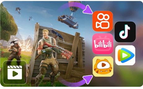 软件支持将生成的视频一键分享并发布到主流社交平台,如Bilibili、虎牙直播、抖音、快手及优酷,导出作品适配各平台画质与比例。可实现主播边直播游戏并及时推送高光片段至直播间